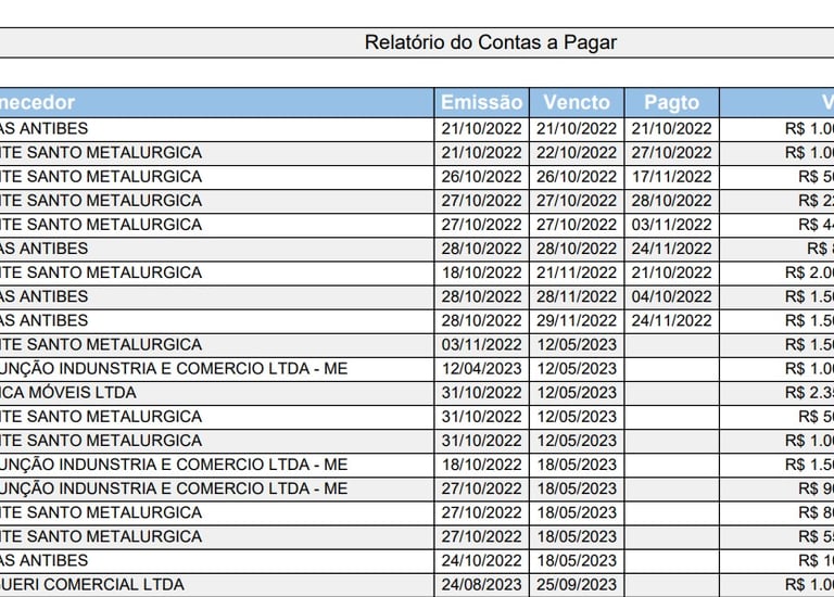Cadastro, Relatórios diversos, Títulos a Pagar